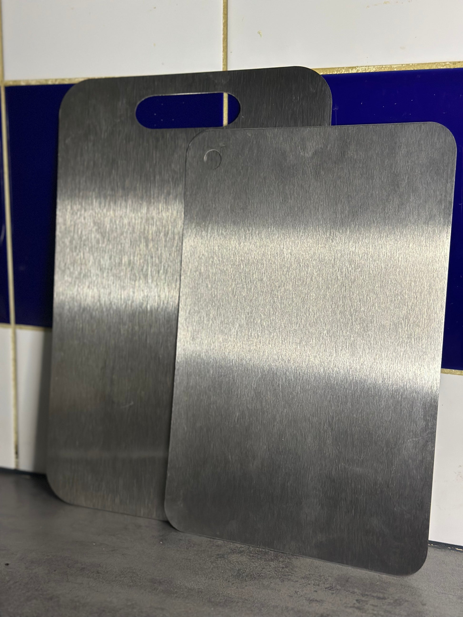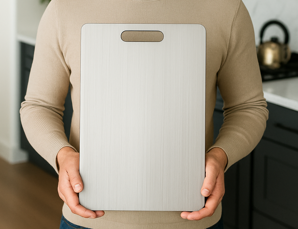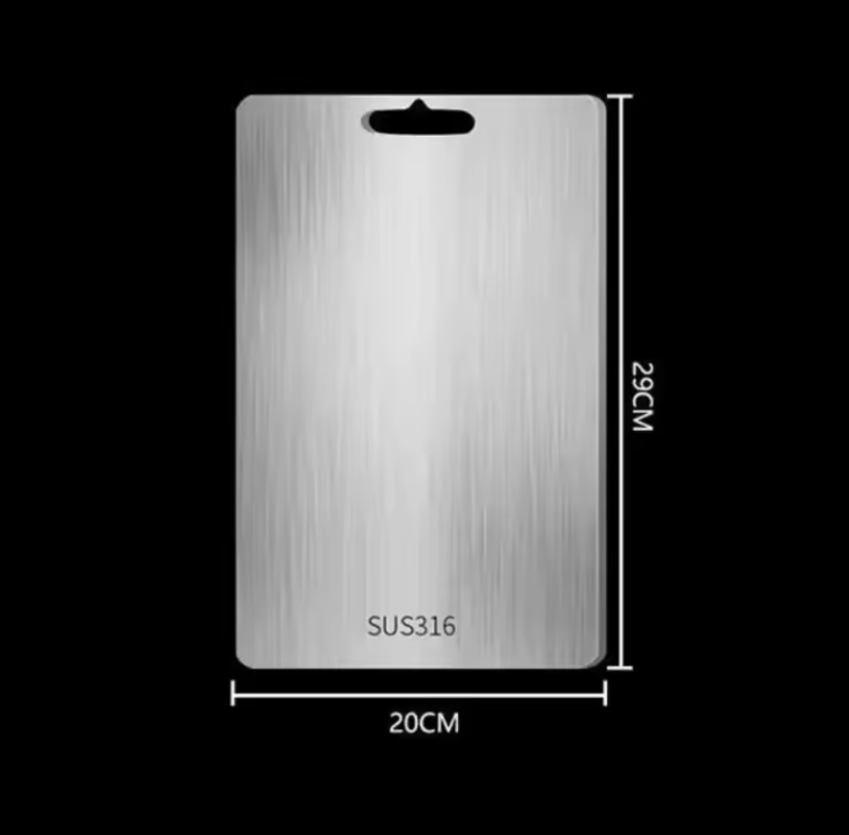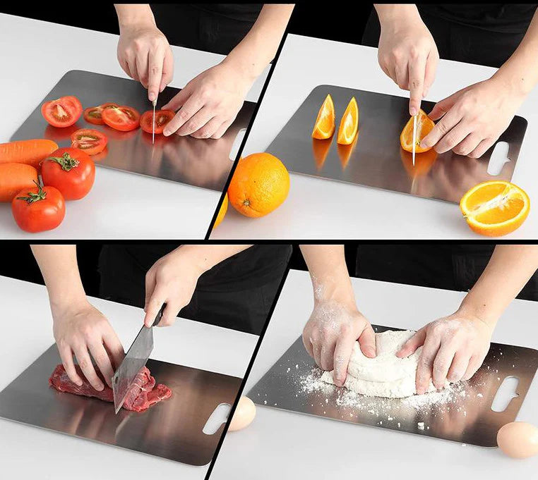 The titanium cutting boards are practical and easy to maintain. Much better than wooden ones. Stainless steel is totally non-porous: it retains neither bacteria, nor mold, nor odors. It's more hygienic. However, you have to be careful when grabbing them to avoid cutting yourself on the sides.